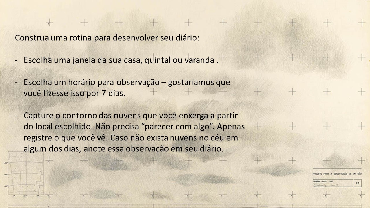 Nesta semana convidamos você para desenvolver um diário de nuvens! Ele pode ser feito com desenhos ou pinturas, basta observar e criar! Vamos começar?